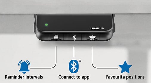 The desks are equipped with an intuitive desk panel designed for easy handling, and to help you stay active throughout your working day. Up and down drive, save your own favourite sit-stand positions and get notifications of when to stand up for healthy benefits.